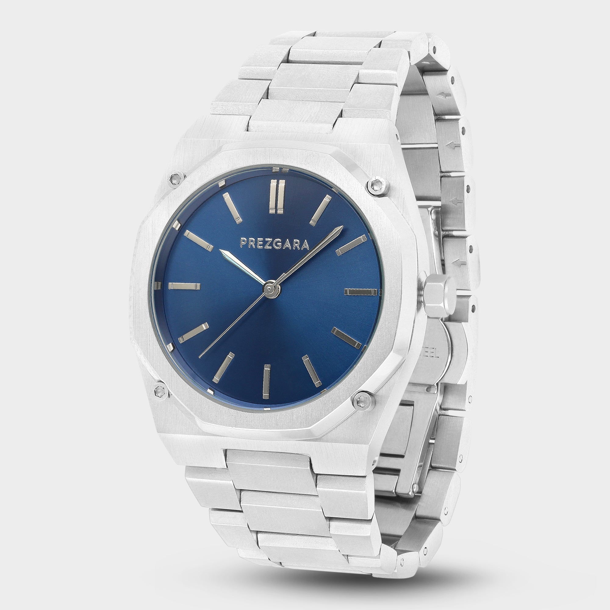 The Sapphire Edition radiates clarity and elegance. Its deep blue dial, set in a durable stainless steel case with matching bracelet, symbolizes wisdom and determination – built for men who value precision and timeless style.